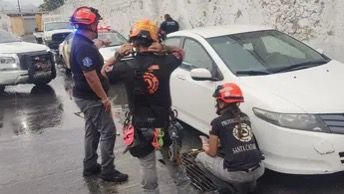 Rescatan a mujer tras ser arrastrada por corriente y quedar atrapada en drenaje en Santa Catarina
