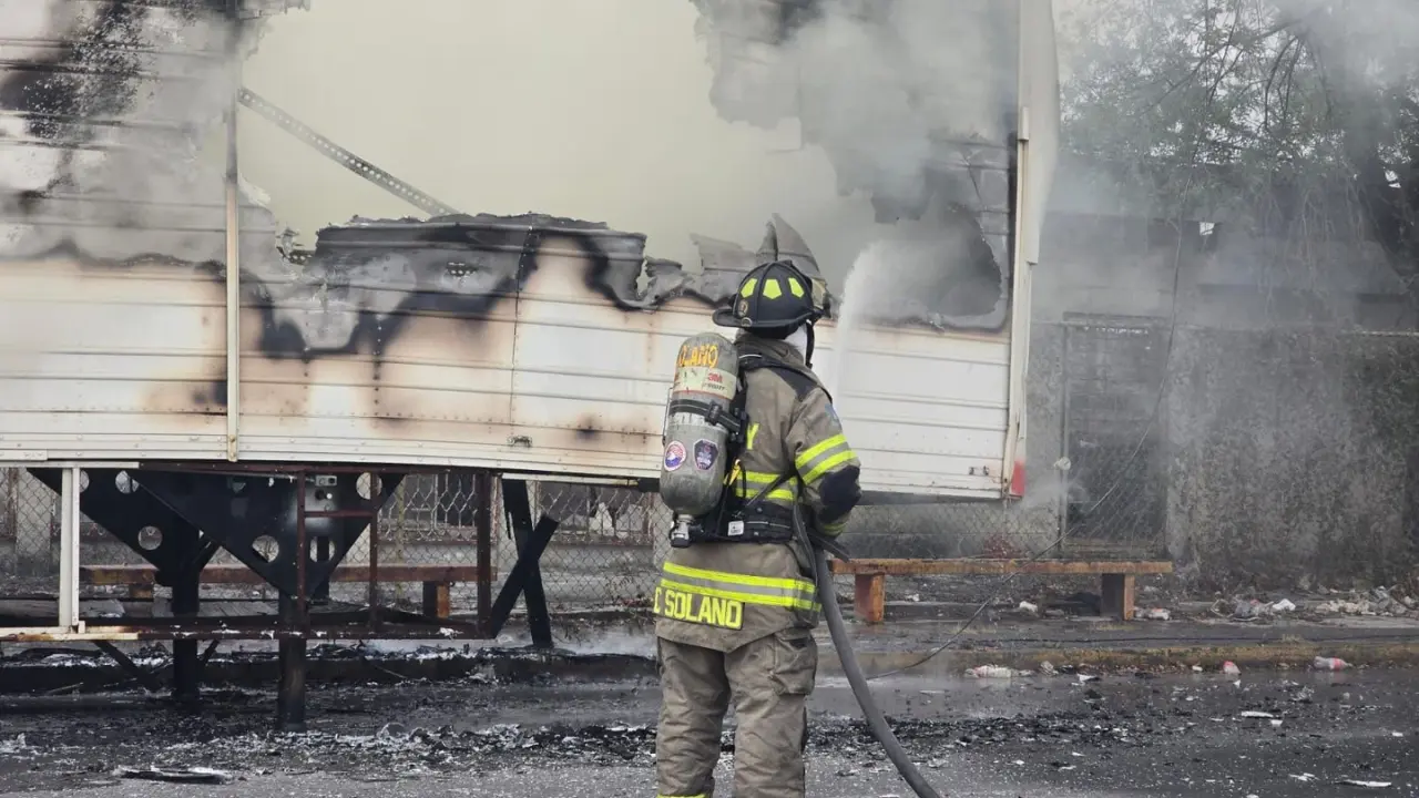 Incendio en caja de tráiler moviliza a cuerpos de emergencia en Monterrey